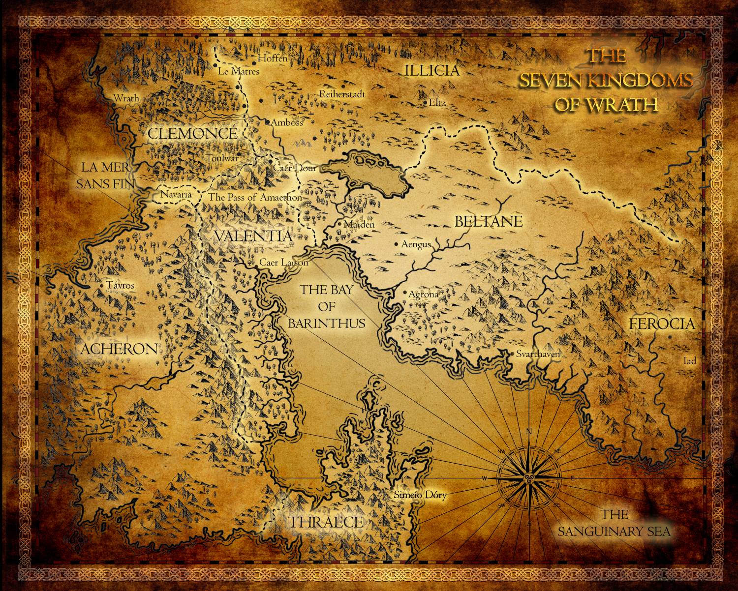 Déjà, si vous cherchez tout autre chose que du médiéval fantastique européen old-school avec des dragons et des mages, passez votre chemin. C'est carrément de la fantasy nostalgique à ce niveau-là. L'auteur jongle avec un bon gros paquet de stéréotypes et de petits schémas désuets, c'est complétement assumé mais si vous êtes pas prêt à vous rouler dans une couverture avec un chocolat chaud pour un revival Baston et Dragons, ce livre n'est pas pour vous. Pour les autres, il y aura peut-être une seconde barrière à passer : Le worldbuilding. Le monde d'Ire est, grosso merdo, l'Europe à qui on aurait filé des coups de maillet dans la gueule. Y'a la pseudo-France, la pseudo-Espagne, la pseudo-Allemagne, et même le... pseudo-pays basque ? Du coup vous aurez des persos avec des noms germanisants, d'autres qui sentent un peu le français, l'italien, etc... Au milieu t'as des noms latins, d'autres qui sortent de Grèce Antique. Ça donne un gros côté foutoir et on tape dans du over-the-top ridicule. Déjà Falco Danté le héros, ça pose la barre haut, puis quand en plus on te sort des hommages sportifs avec Dominic Ginola ou Sébastien Cabal, là tu sais plus trop où t'es. T'en rajoutes une couche avec le royaume méchant qui s'appelle la Férocie, il auraient pu mettre la Méchantie et la Gentillie aussi, tant qu'à faire. Puis t'es perdu quand tu comprends que Ire est à la fois ce grand continent, mais aussi une ville au milieu. Bref, c'est un peu n'importe quoi. Mais partez pas tout de suite.